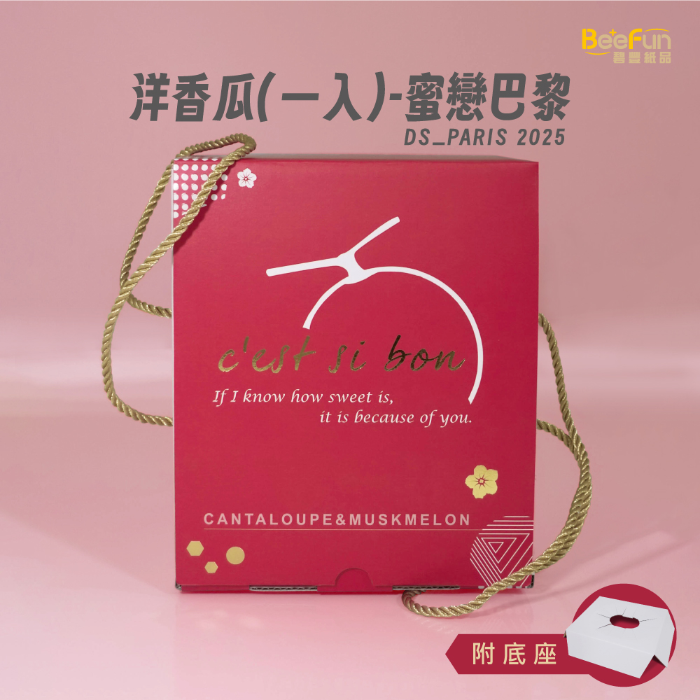 ▌ 規格說明品名:洋香瓜(一入)-蜜戀巴黎 (附隔板底座、提繩)產品代號:DS_PARIS 2025盛裝:躺放式,約可裝 2.5 ~ 3台斤較佳 (最大3.5台斤,請評估瓜的大小,於尺寸範圍內皆可放的下)