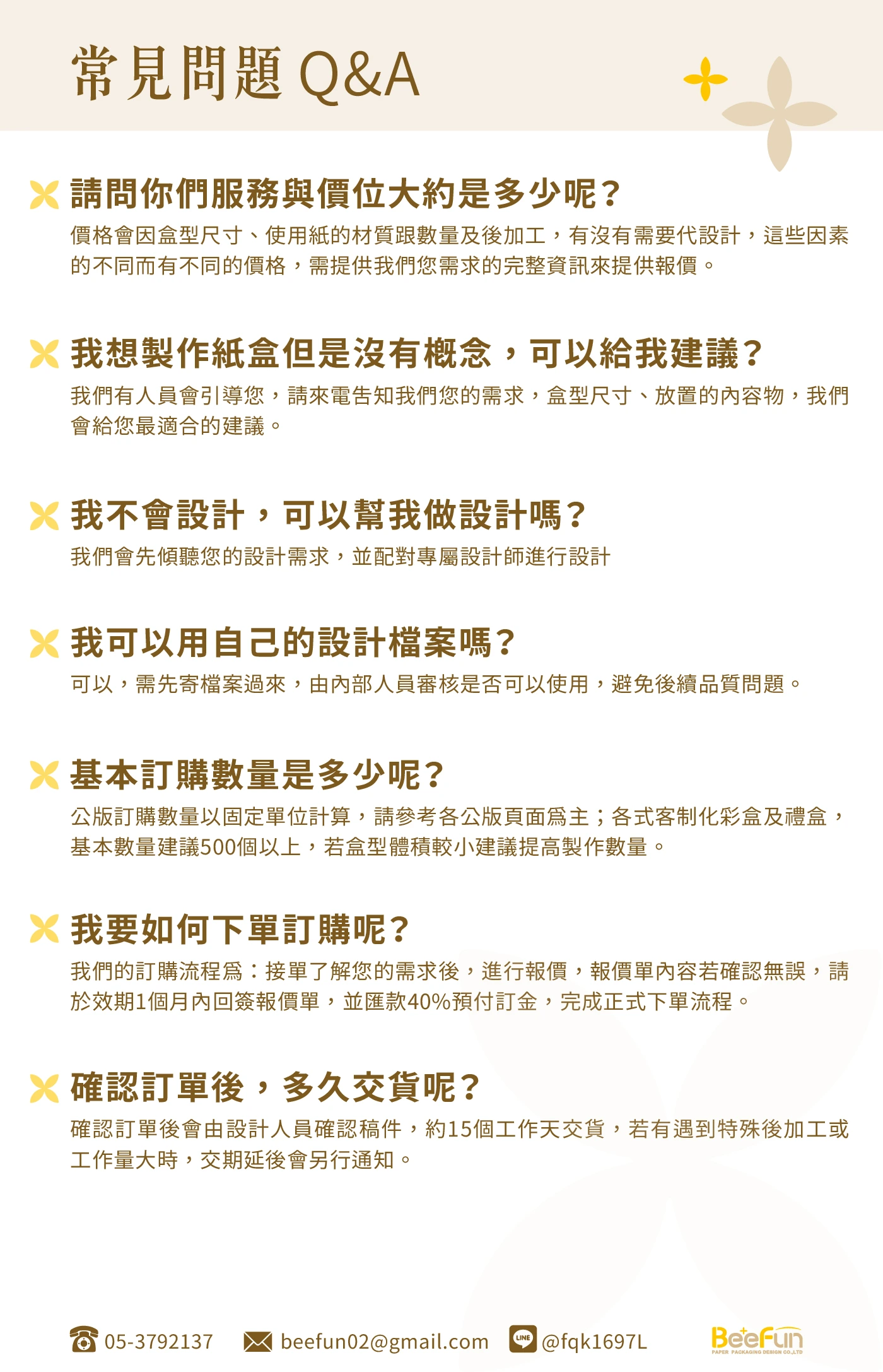 會員中心 購物車 關於我們 客製流程&盒型 Q&A 最新消息 聯絡我們