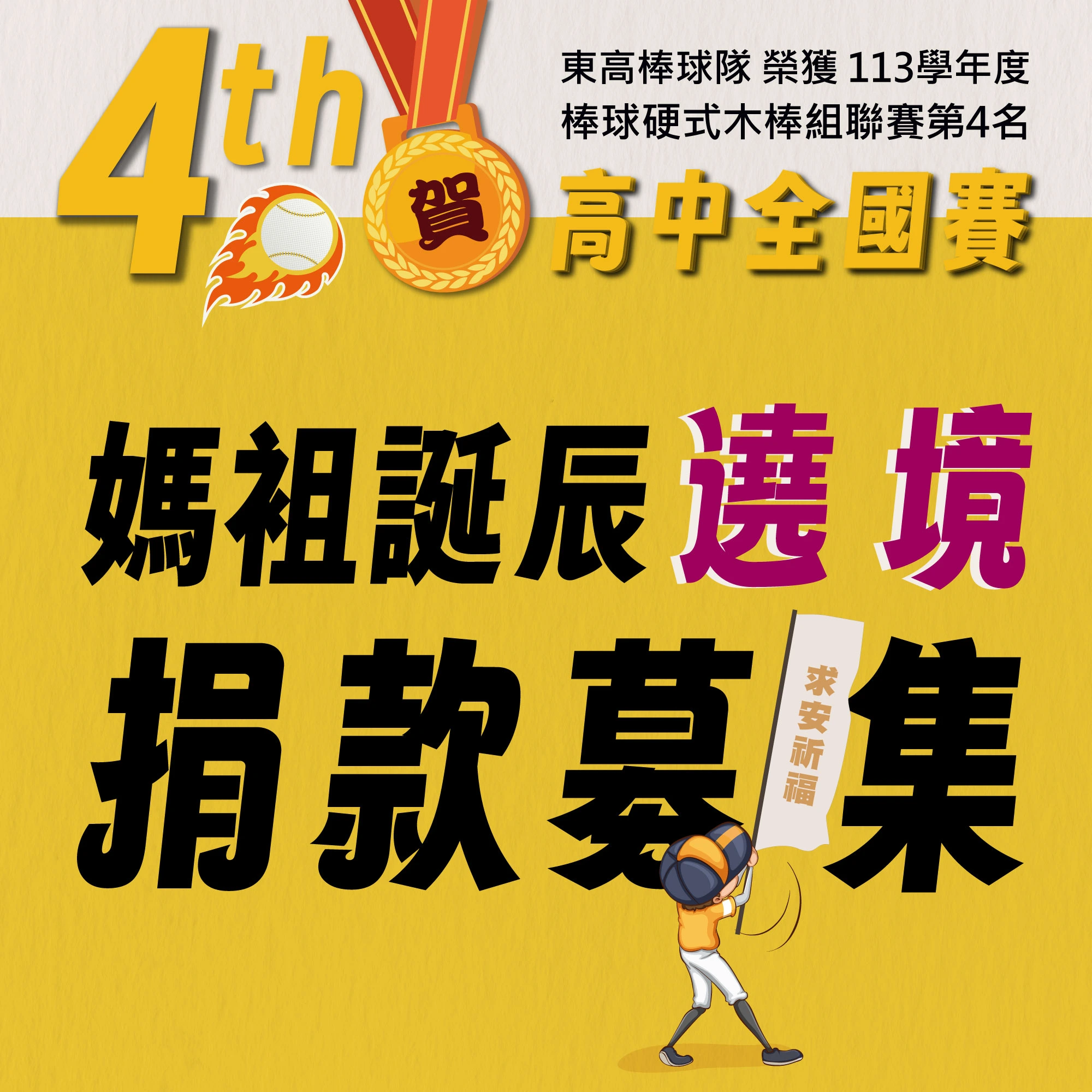 114年東高棒球隊捐款募集.贊助球隊培訓與公費生育才計畫
